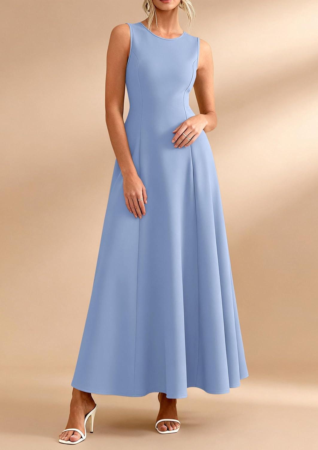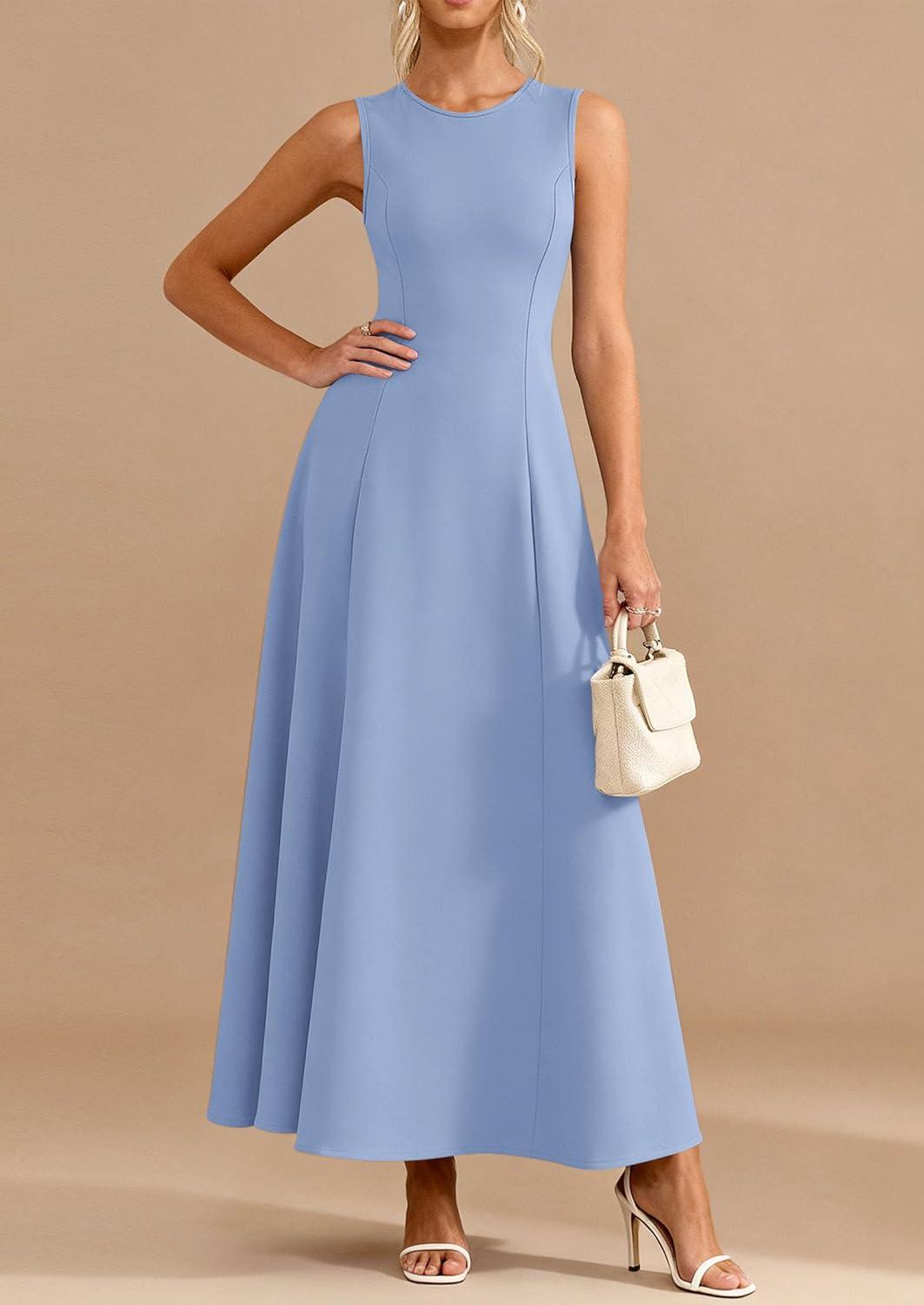 PRETTYGARDEN Women’s Summer Tank Maxi Dress 2026 Spring Sleeveless Swing A Line Long Flowy Elegant Cocktail Dresses Pockets(Light Blue)