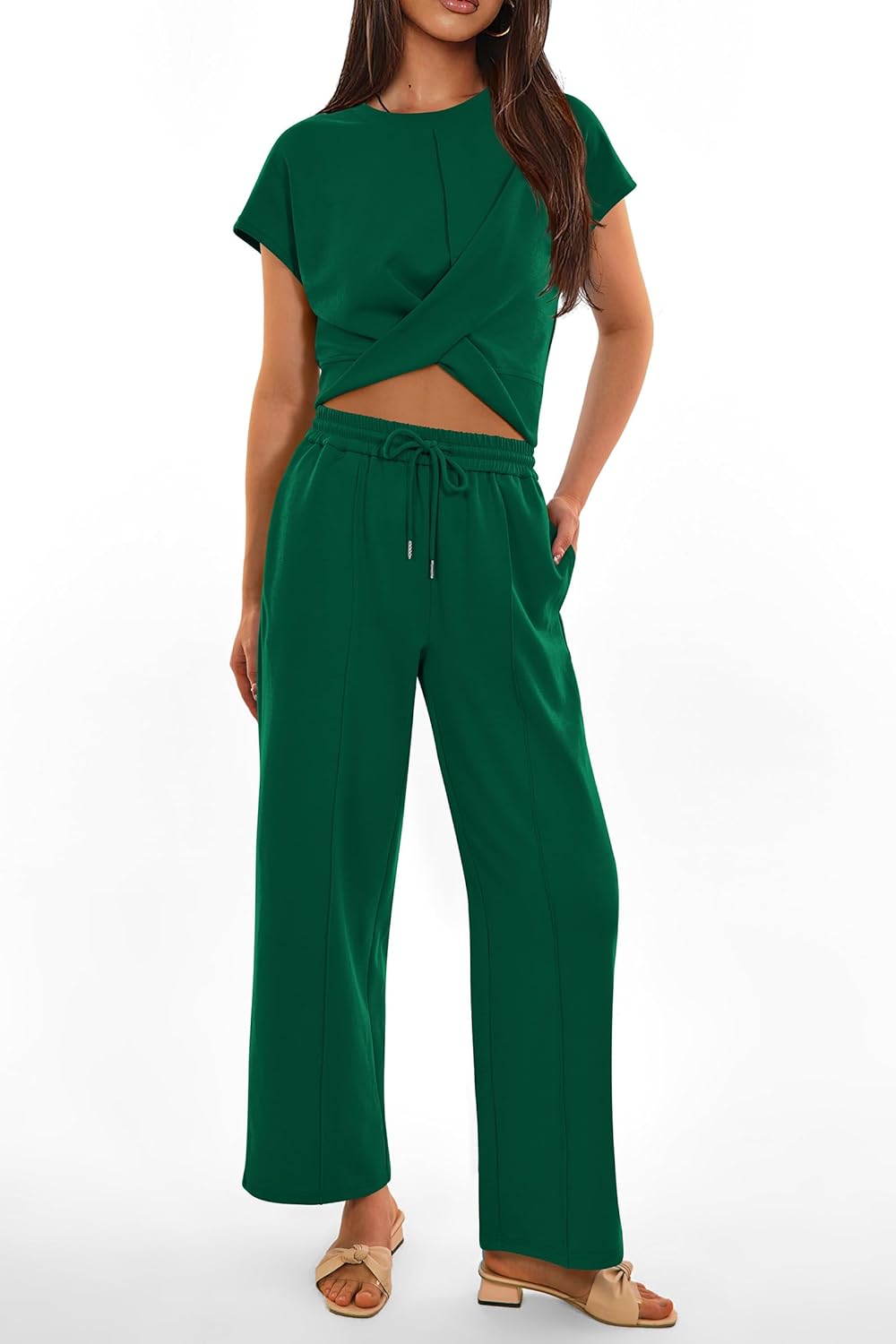 Our clearance event features the best deals on PRETTYGARDEN Women’s Summer Two Piece Outfits Tracksuit Twist Front Crop Tops T Shirts Wide Leg Pants Matching Lounge Sets(Dark Green) and accessories. Shop now!