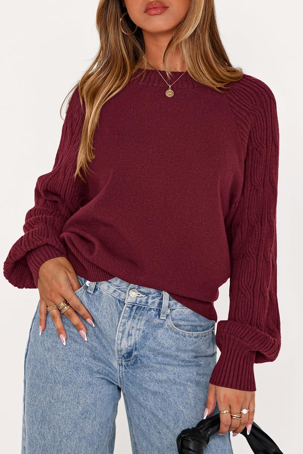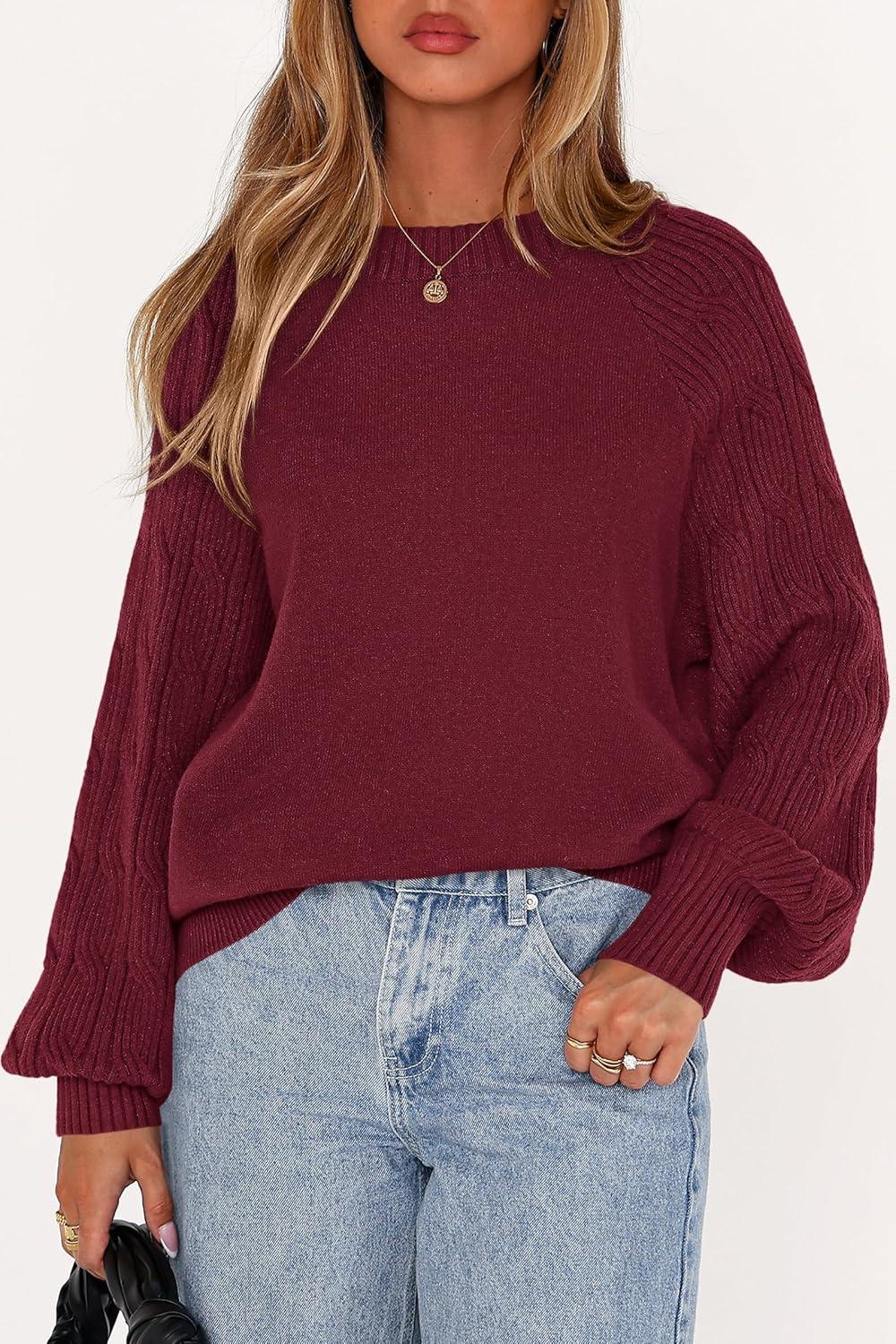 PRETTYGARDEN Womens Sweaters Fall Fashion 2025 Crew Neck Cable Knit Casual Loose Chunky Tunic Sweater Winter Clothing(Burgundy)