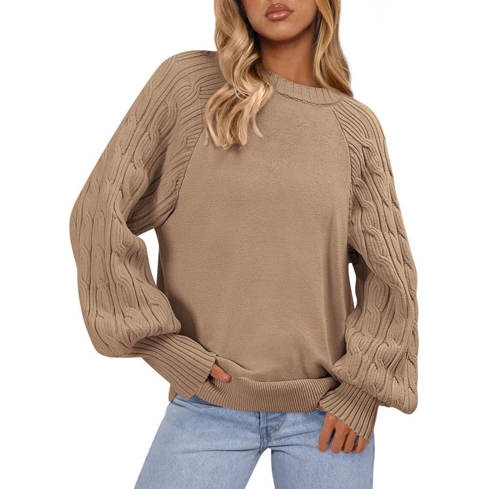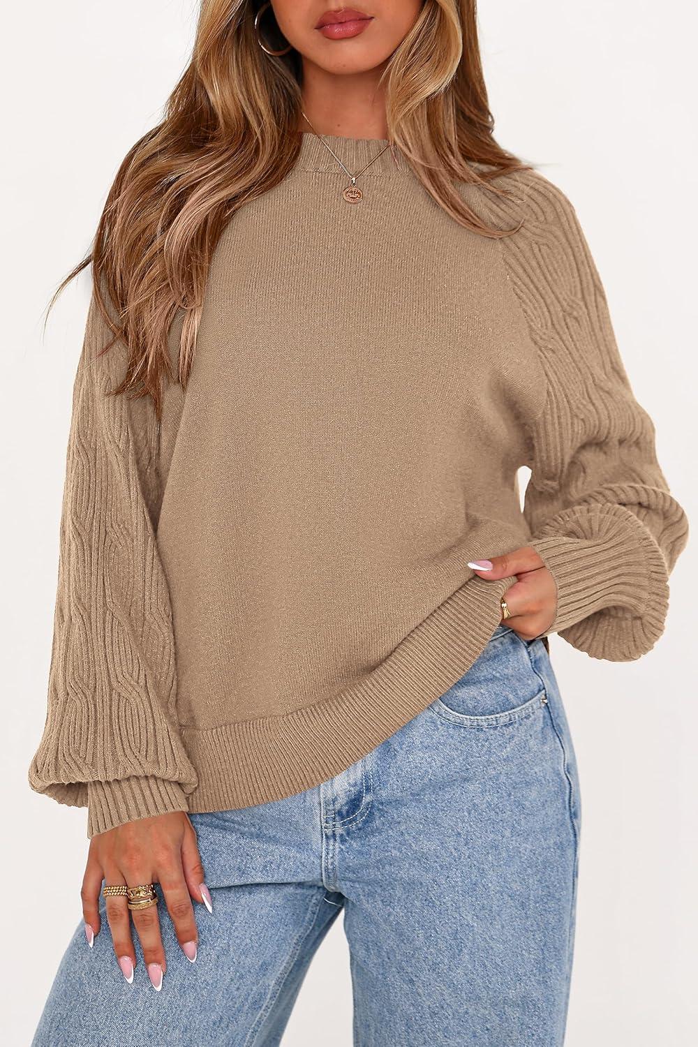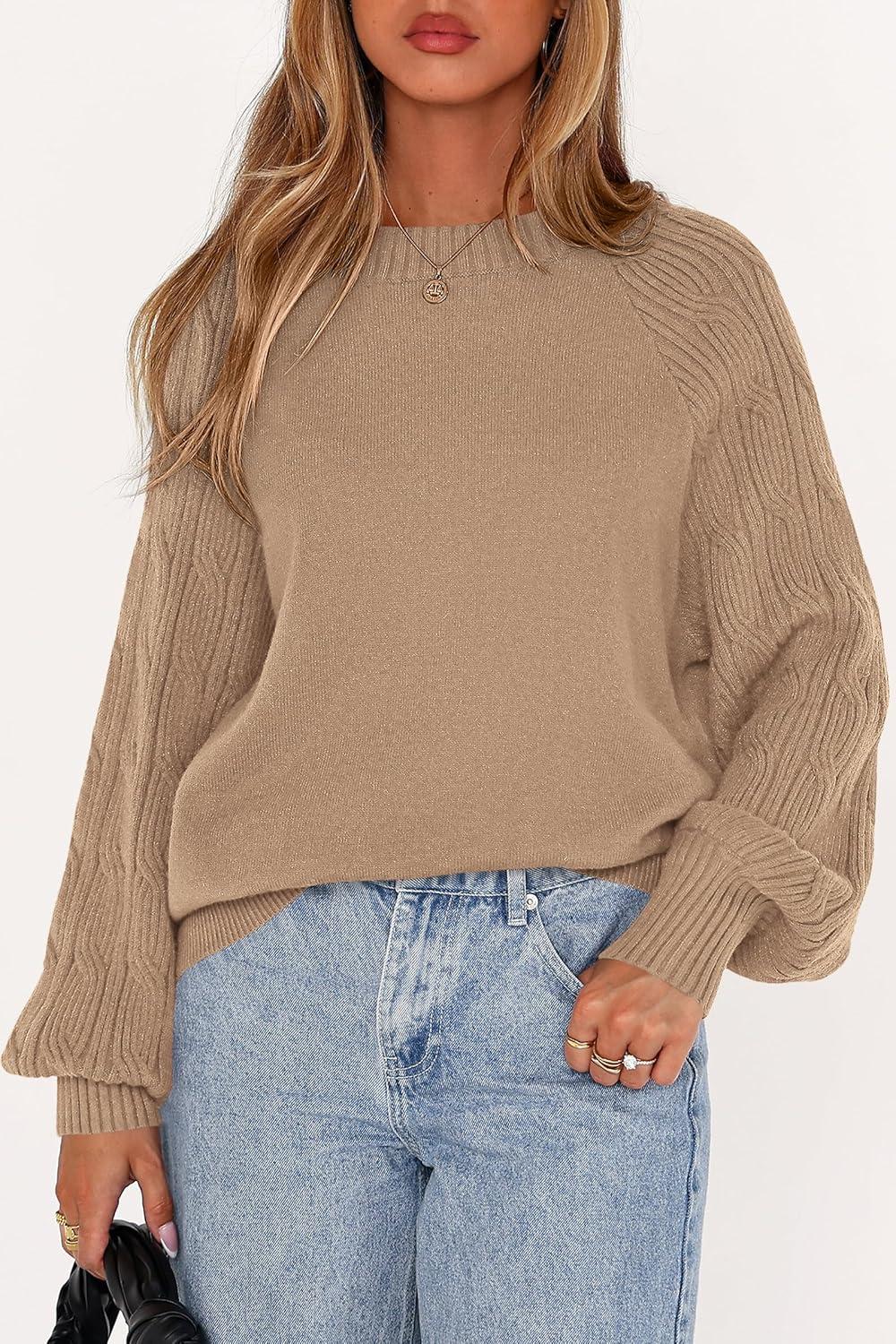 PRETTYGARDEN Womens Sweaters Fall Fashion 2025 Crew Neck Cable Knit Casual Loose Chunky Tunic Sweater Winter Clothing(Khaki)
