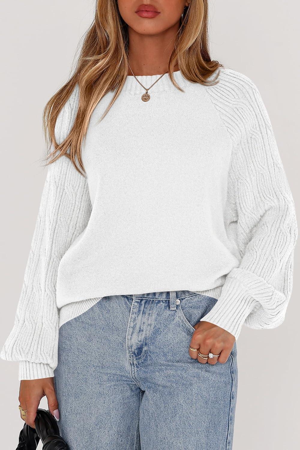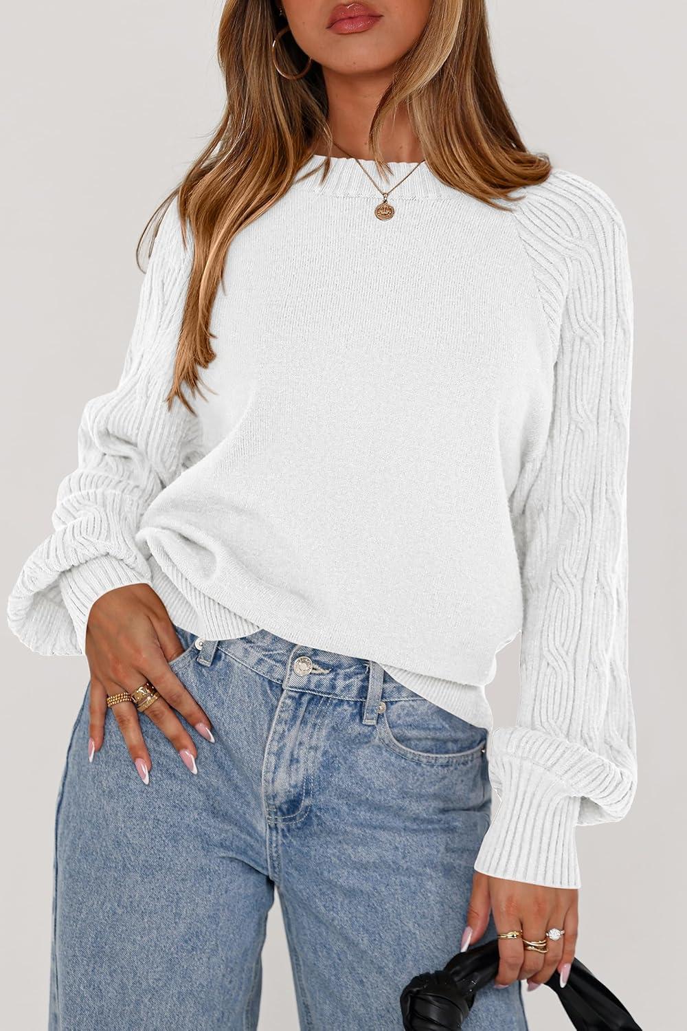 PRETTYGARDEN Womens Sweaters Fall Fashion 2025 Crew Neck Cable Knit Casual Loose Chunky Tunic Sweater Winter Clothing(White)