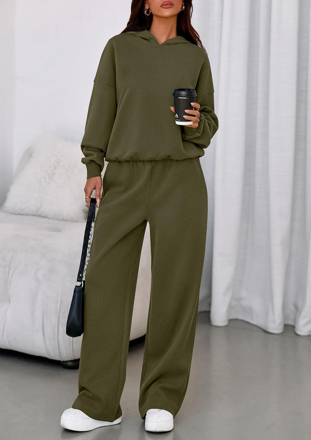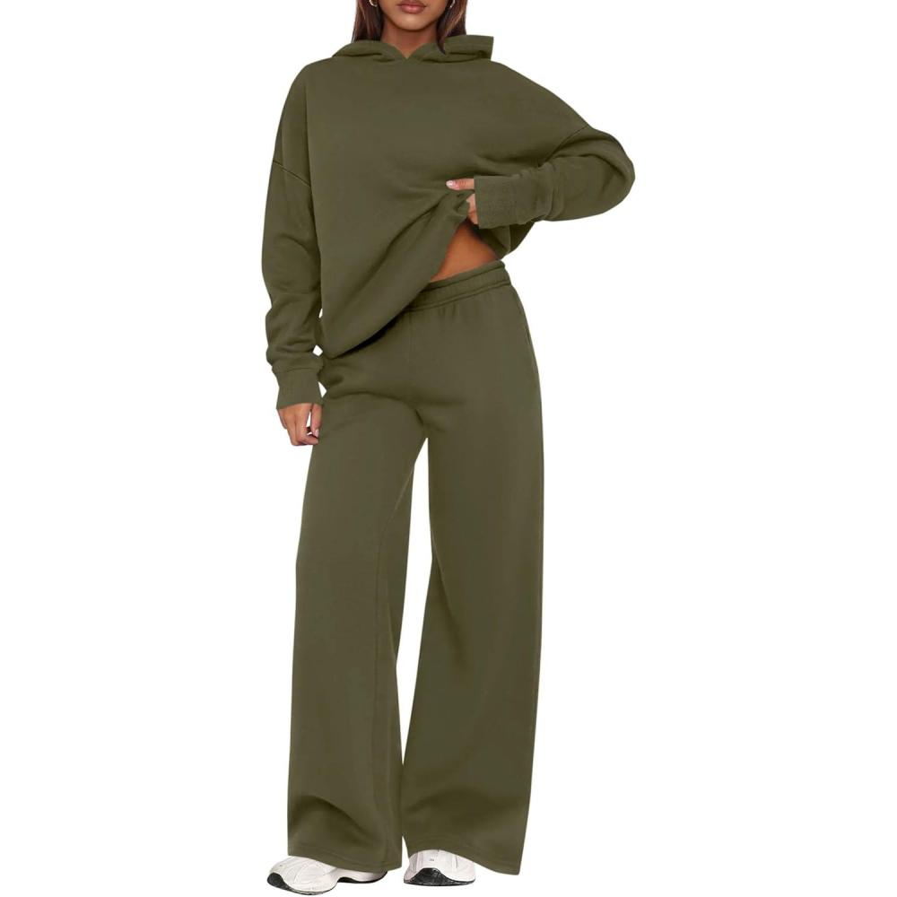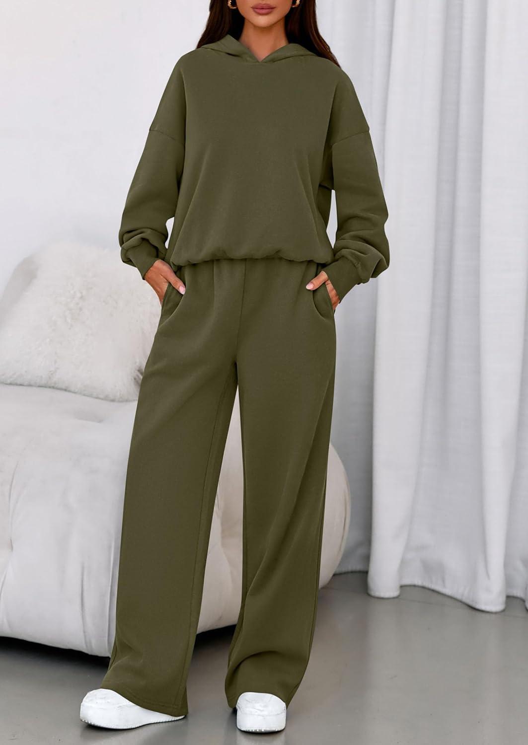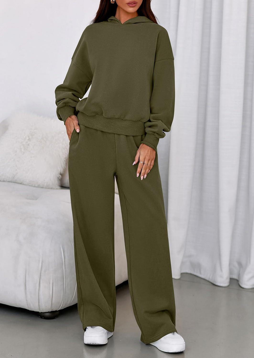 PRETTYGARDEN Womens Sweatsuits 2 Piece Set 2025 Casual Winter Long Sleeve Hoodie Loose Wide Leg Sweatpants Fall Tracksuit(Army Green)