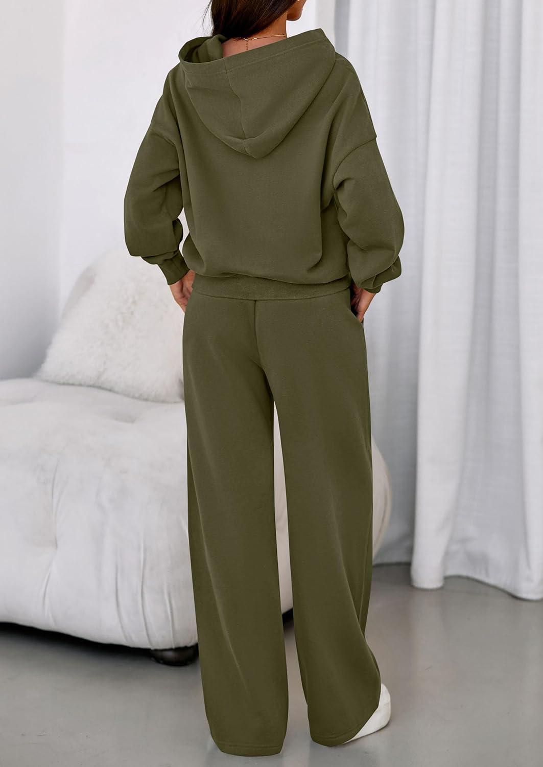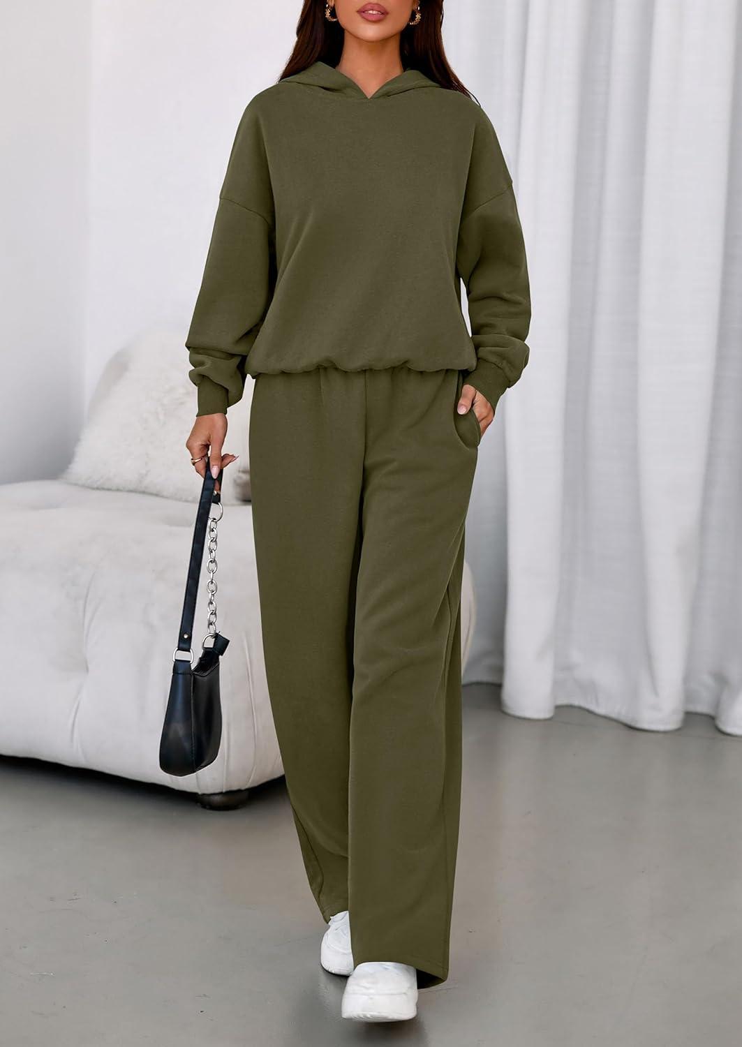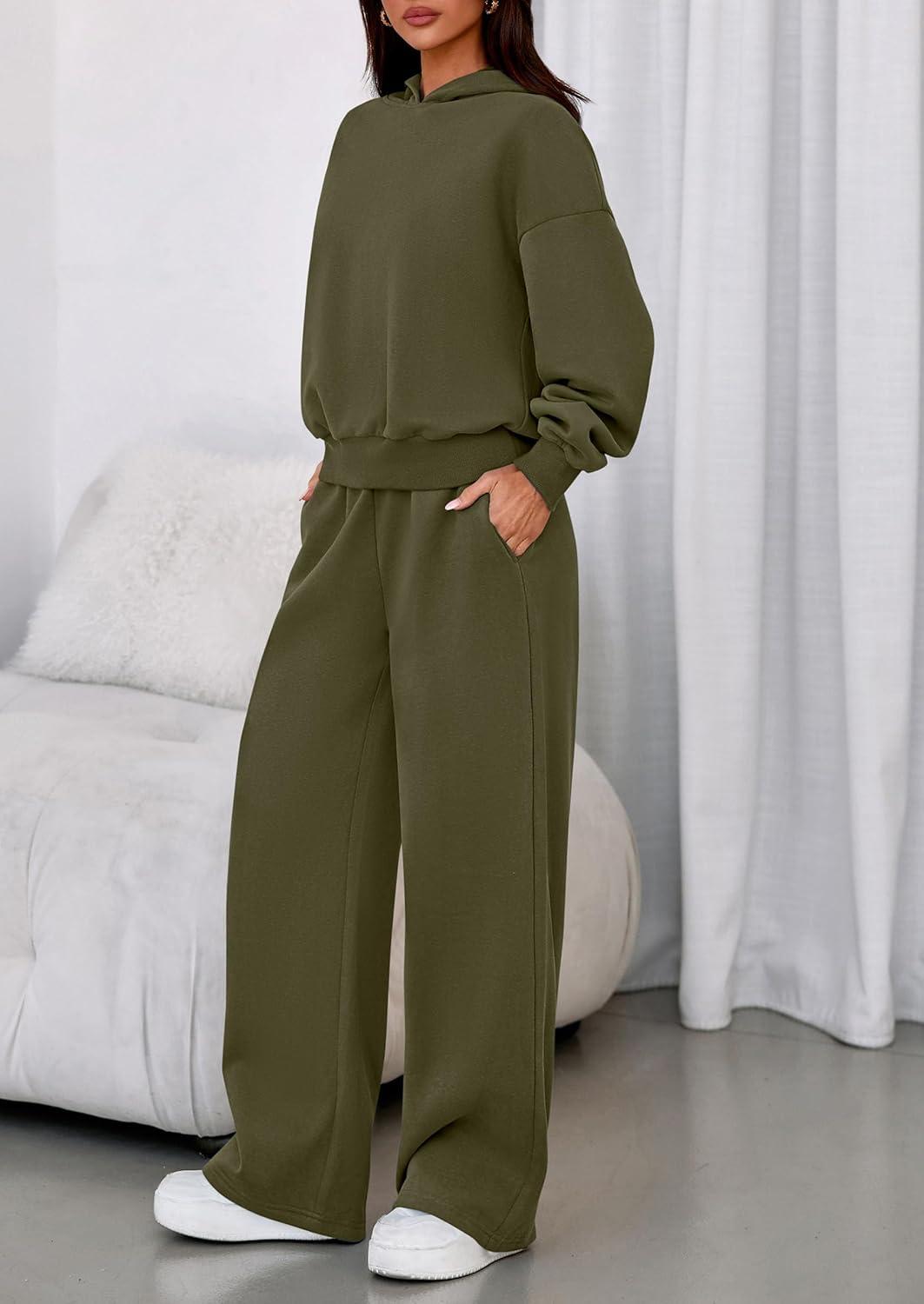 PRETTYGARDEN Womens Sweatsuits 2 Piece Set 2025 Casual Winter Long Sleeve Hoodie Loose Wide Leg Sweatpants Fall Tracksuit(Army Green)