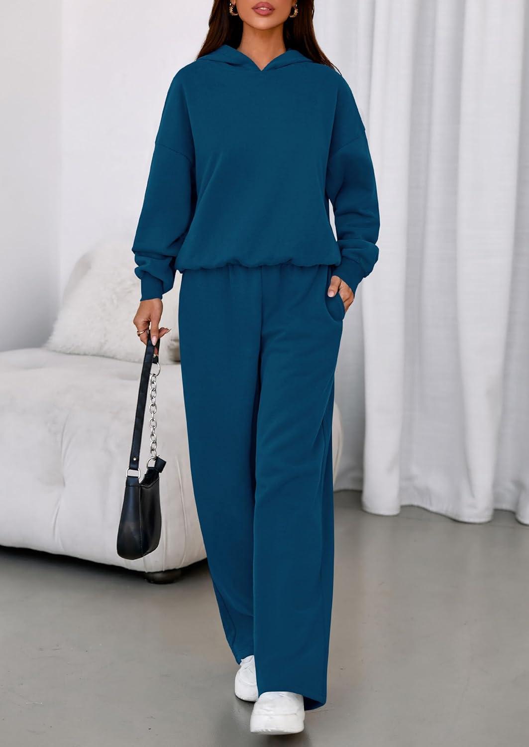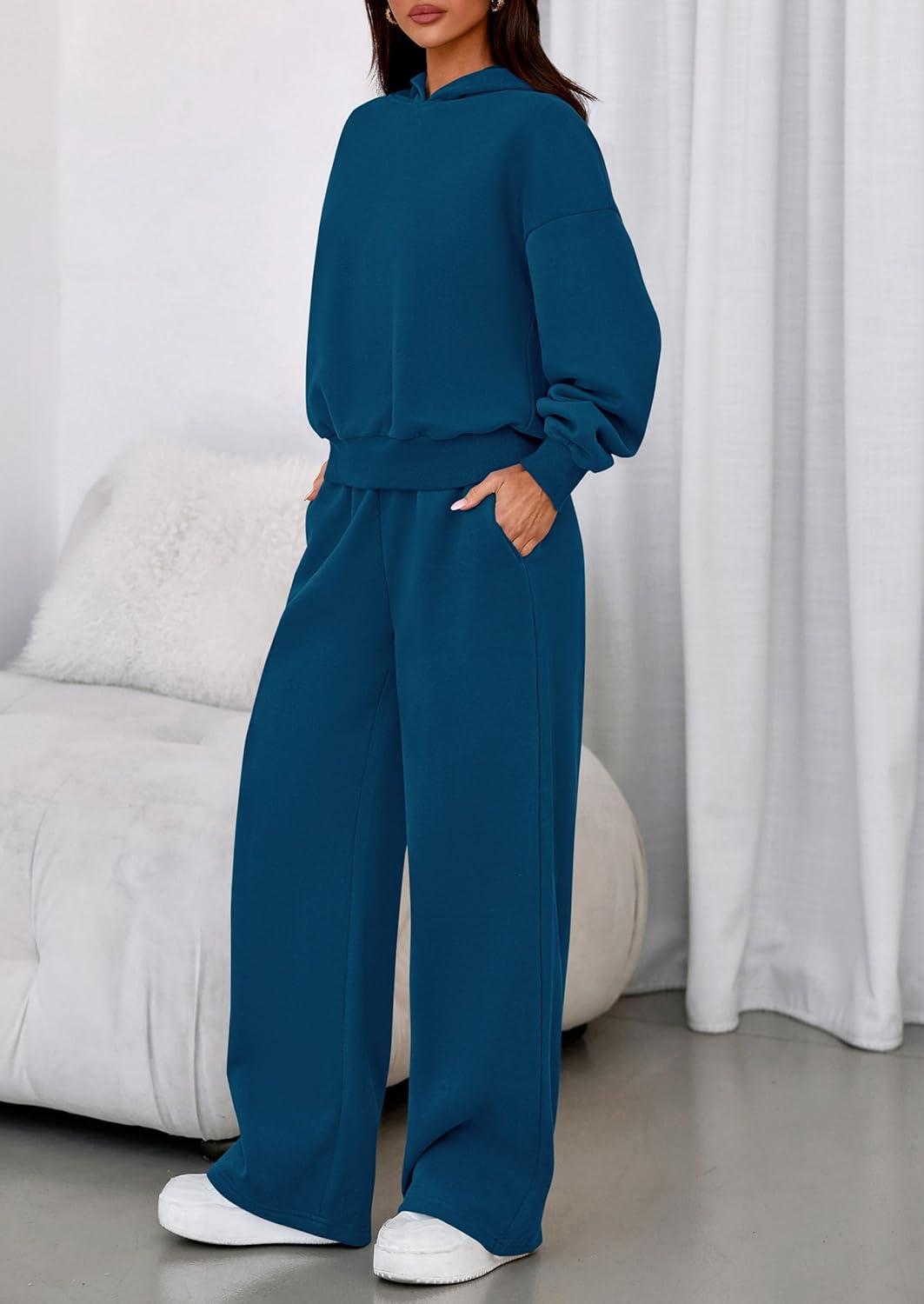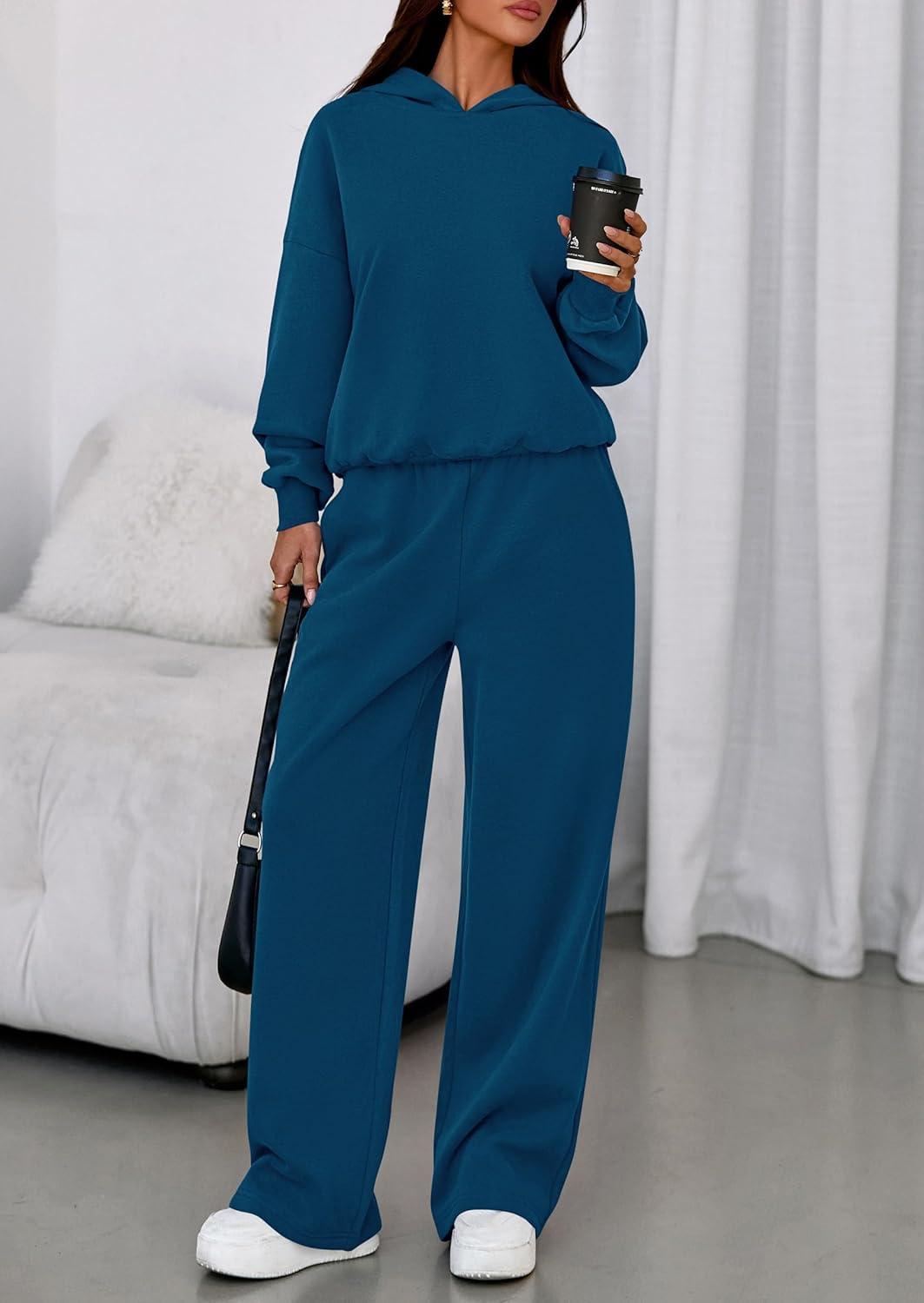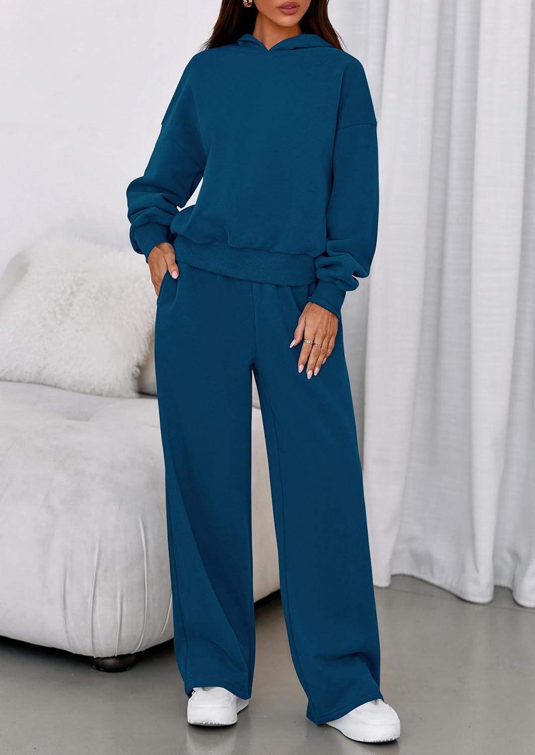 PRETTYGARDEN Womens Sweatsuits 2 Piece Set 2025 Casual Winter Long Sleeve Hoodie Loose Wide Leg Sweatpants Fall Tracksuit(Dark Blue)
