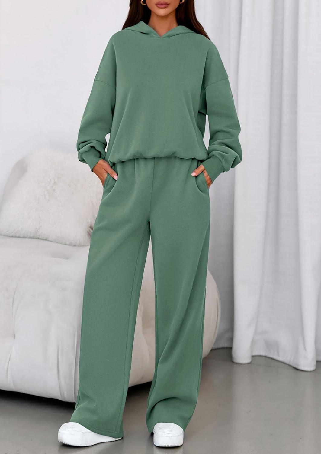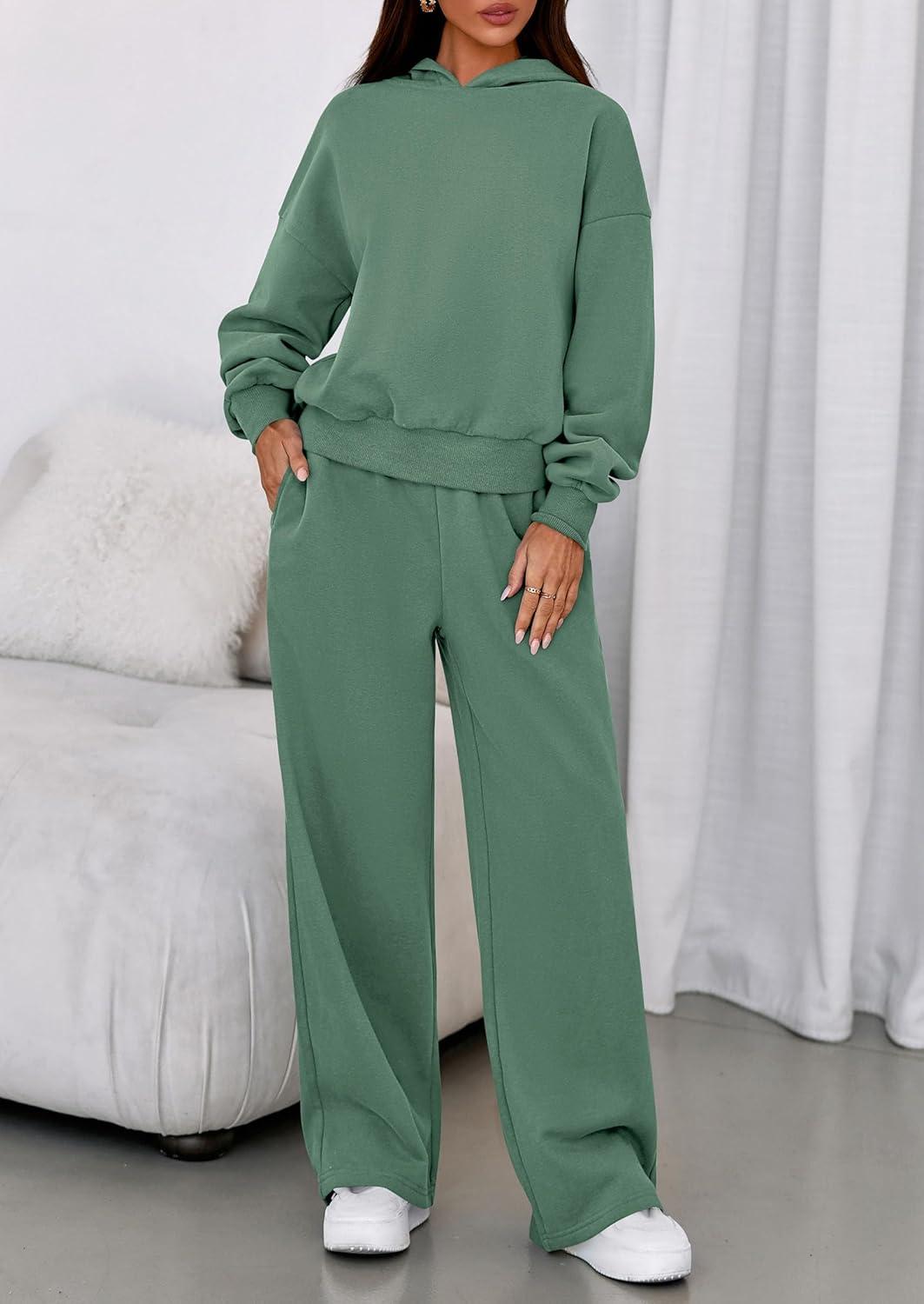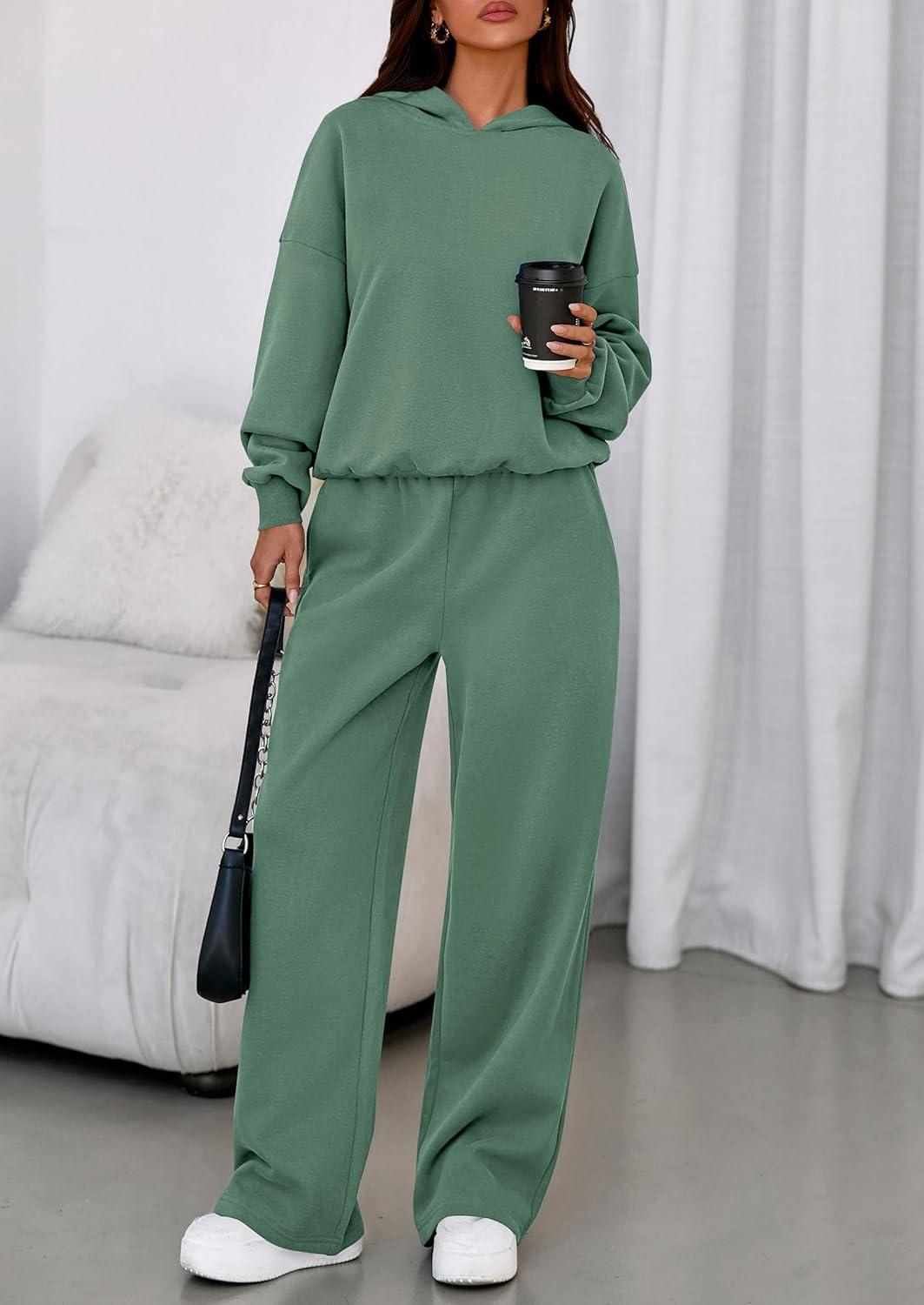 PRETTYGARDEN Womens Sweatsuits 2 Piece Set 2025 Casual Winter Long Sleeve Hoodie Loose Wide Leg Sweatpants Fall Tracksuit(Grey Green)