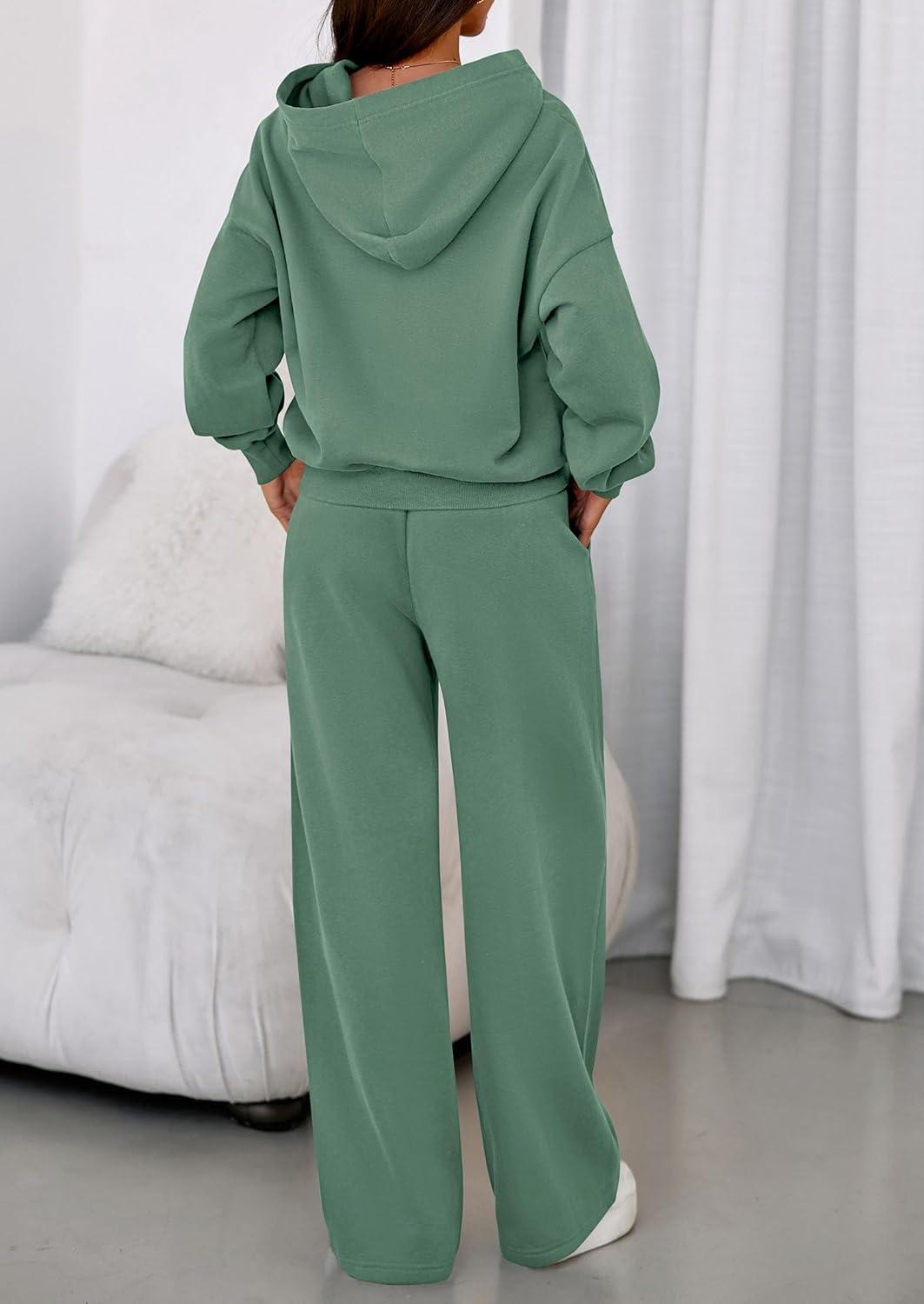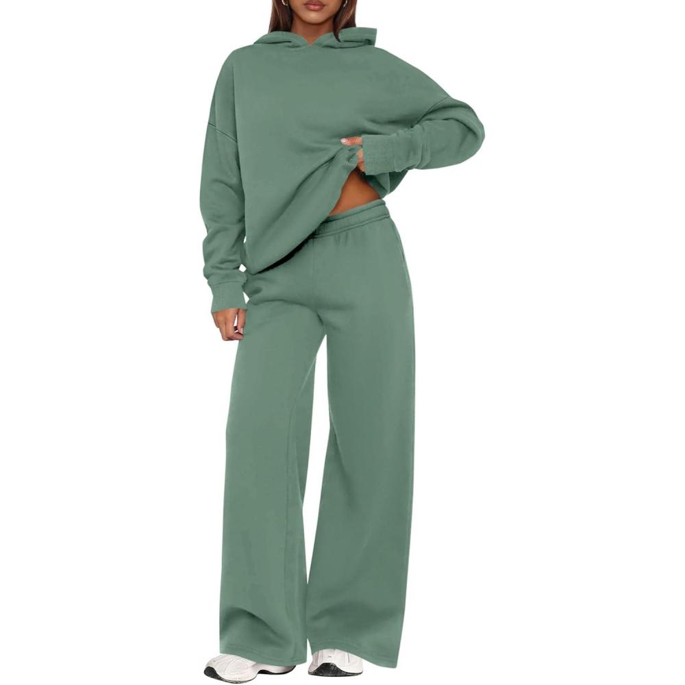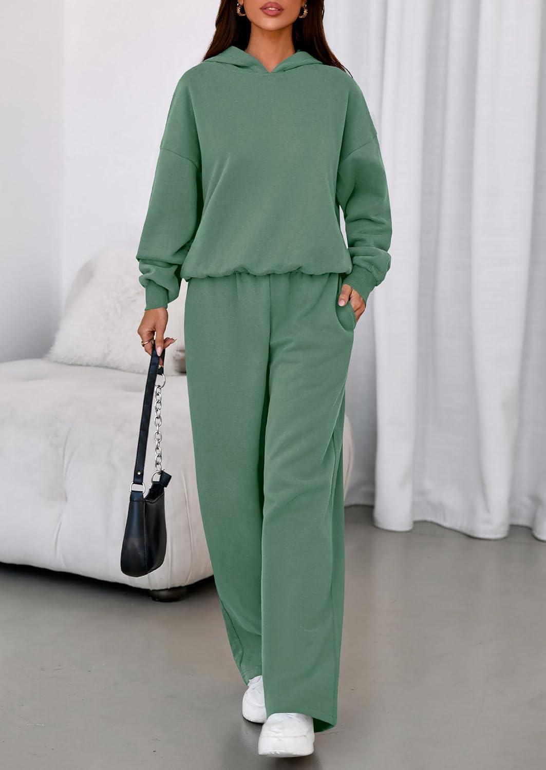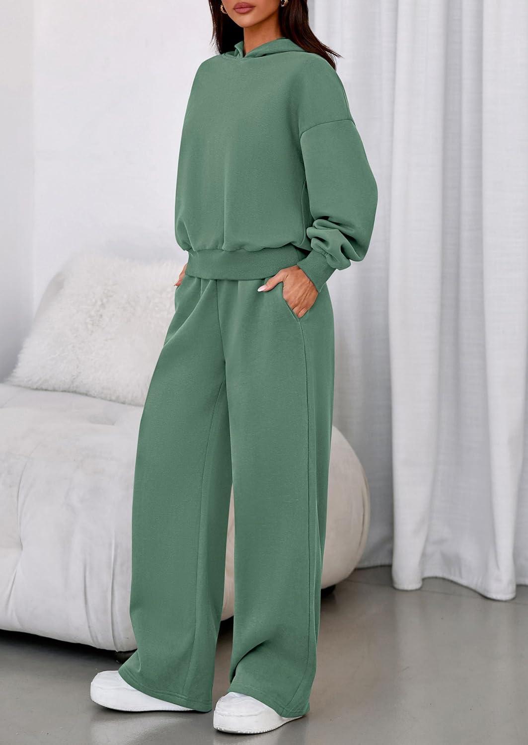 PRETTYGARDEN Womens Sweatsuits 2 Piece Set 2025 Casual Winter Long Sleeve Hoodie Loose Wide Leg Sweatpants Fall Tracksuit(Grey Green)