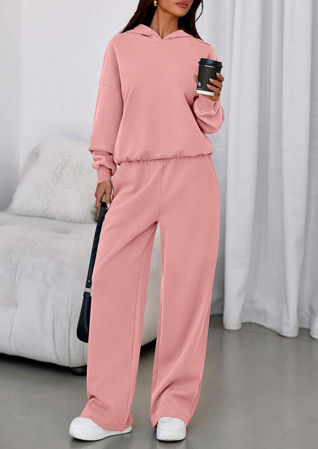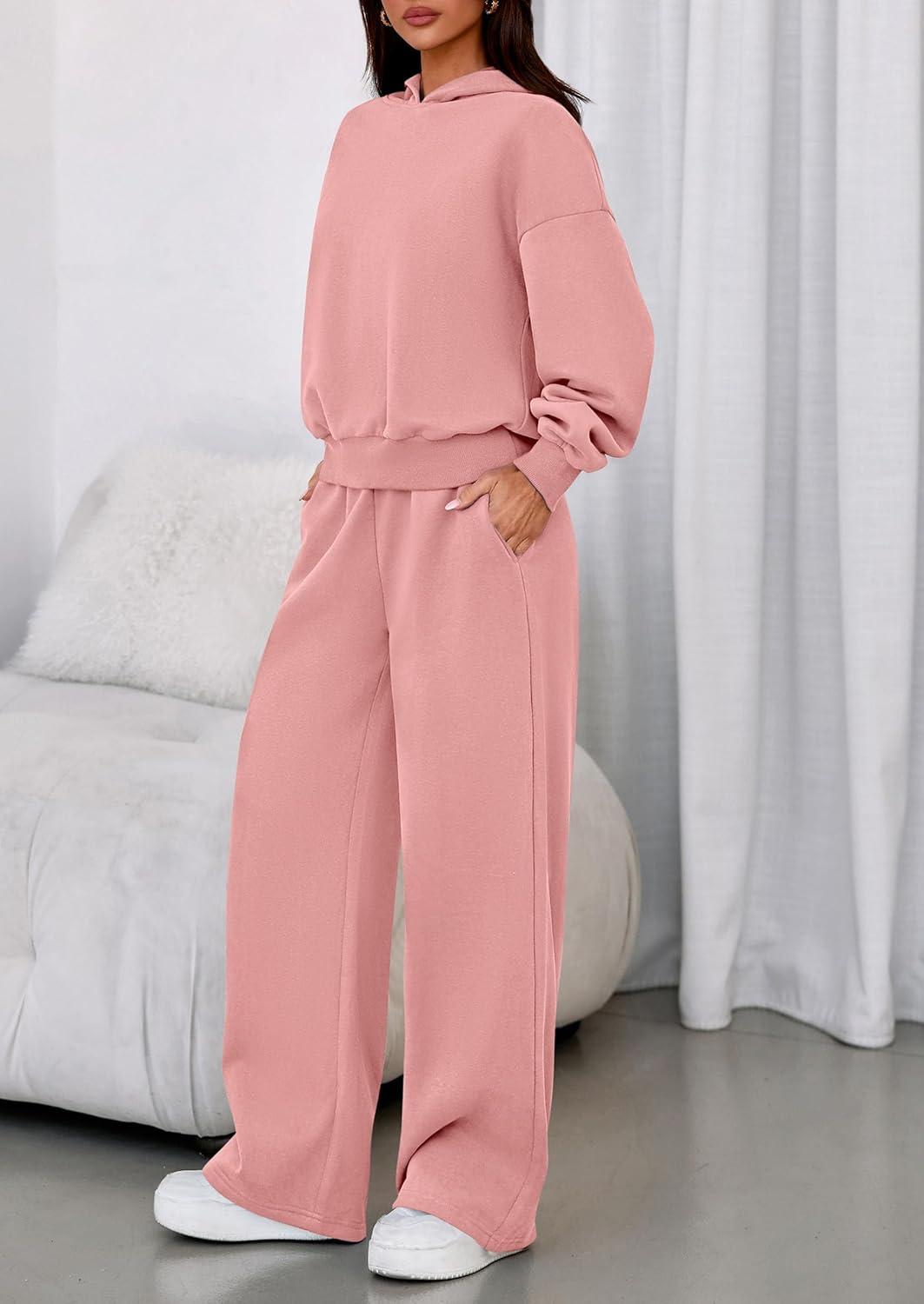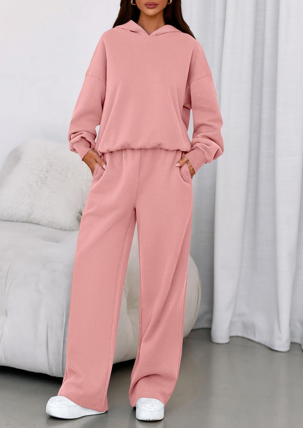 PRETTYGARDEN Womens Sweatsuits 2 Piece Set 2025 Casual Winter Long Sleeve Hoodie Loose Wide Leg Sweatpants Fall Tracksuit(Pink)