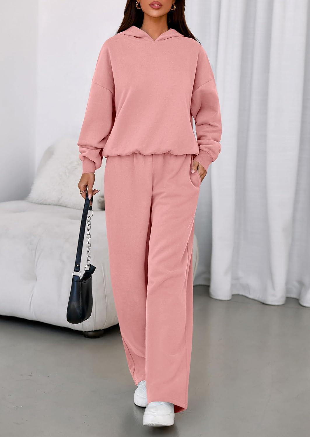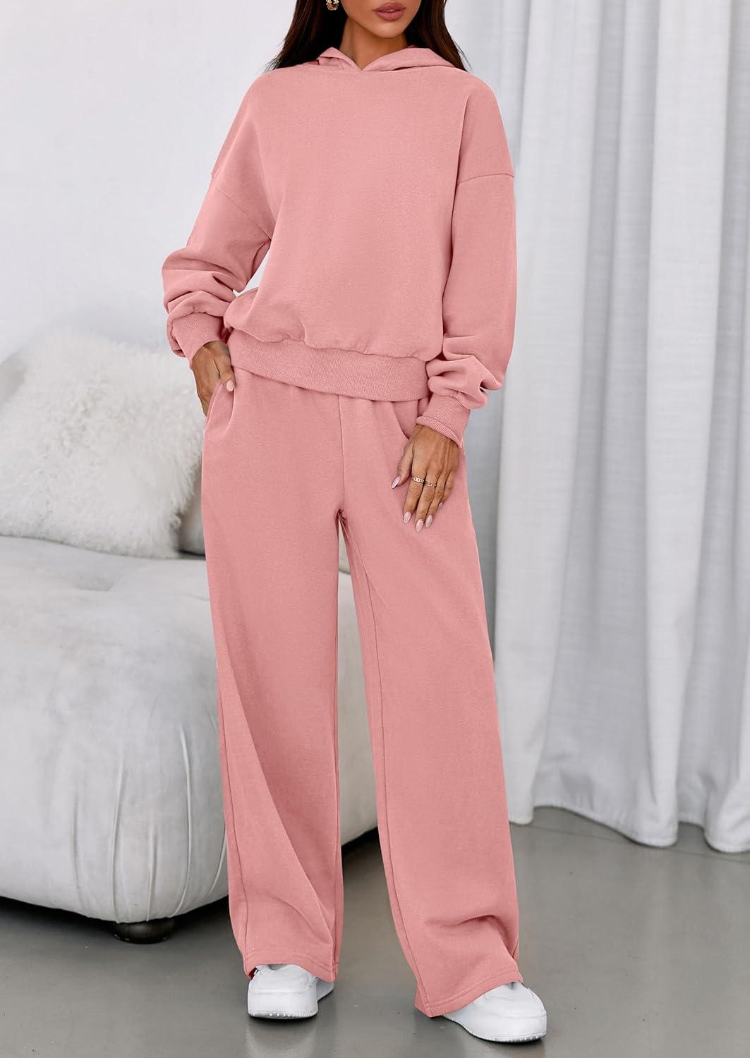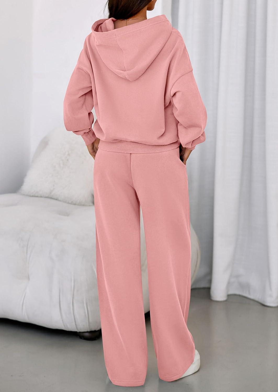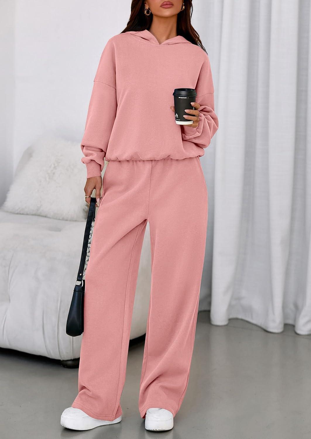 PRETTYGARDEN Womens Sweatsuits 2 Piece Set 2025 Casual Winter Long Sleeve Hoodie Loose Wide Leg Sweatpants Fall Tracksuit(Pink)