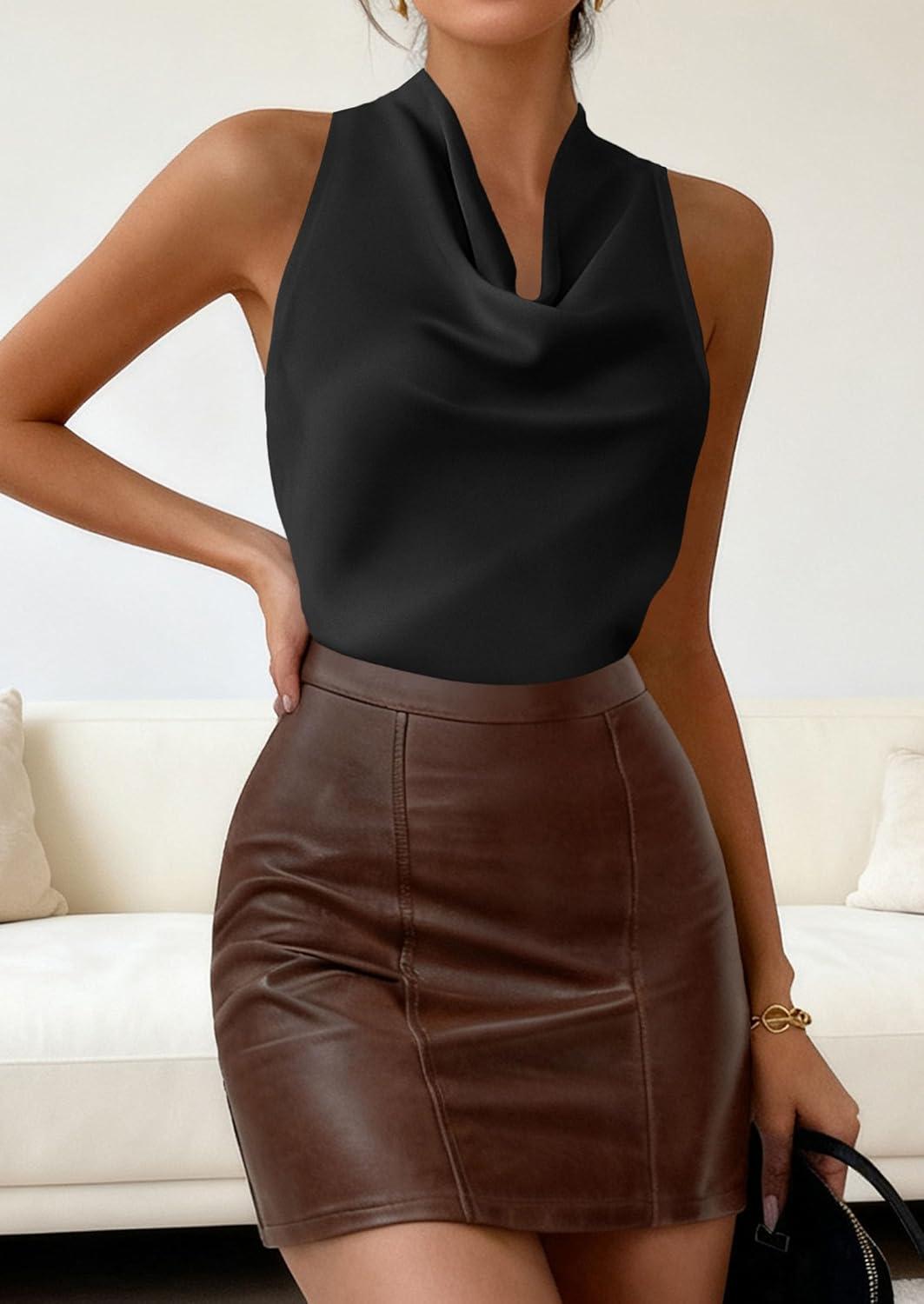PRETTYGARDEN Women’s Tie Halter Going Out Tops Summer 2026 Cowl Neck Vest Backless Sleeveless Tank Top Party Date Outfits(Black)