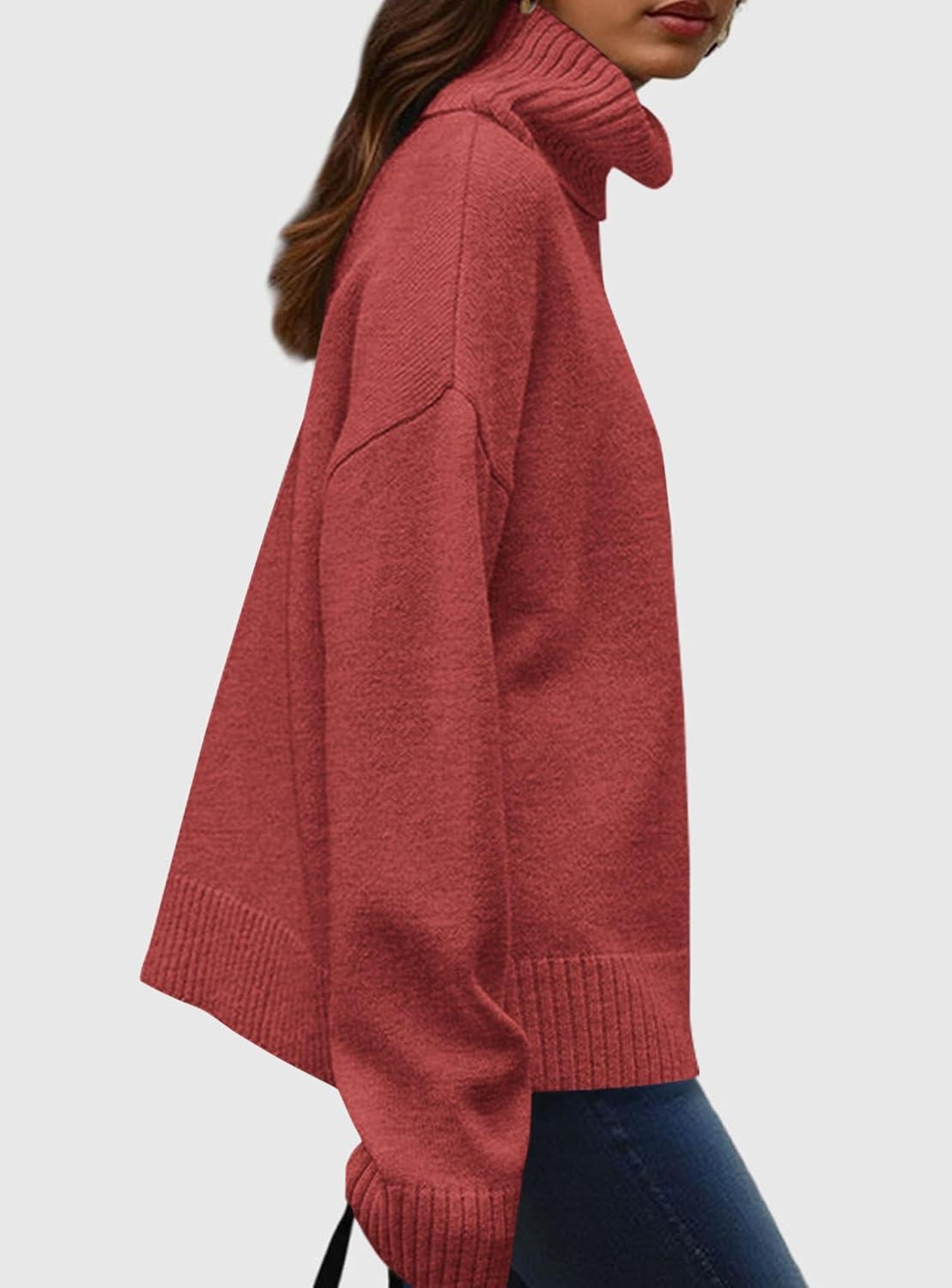 imagePRETTYGARDEN Womens Turtleneck Long Sleeve Sweater 2025 Fall Trendy Loose Fit Casual Tops Chunky Knit Pullover SweatersBurnt Orange