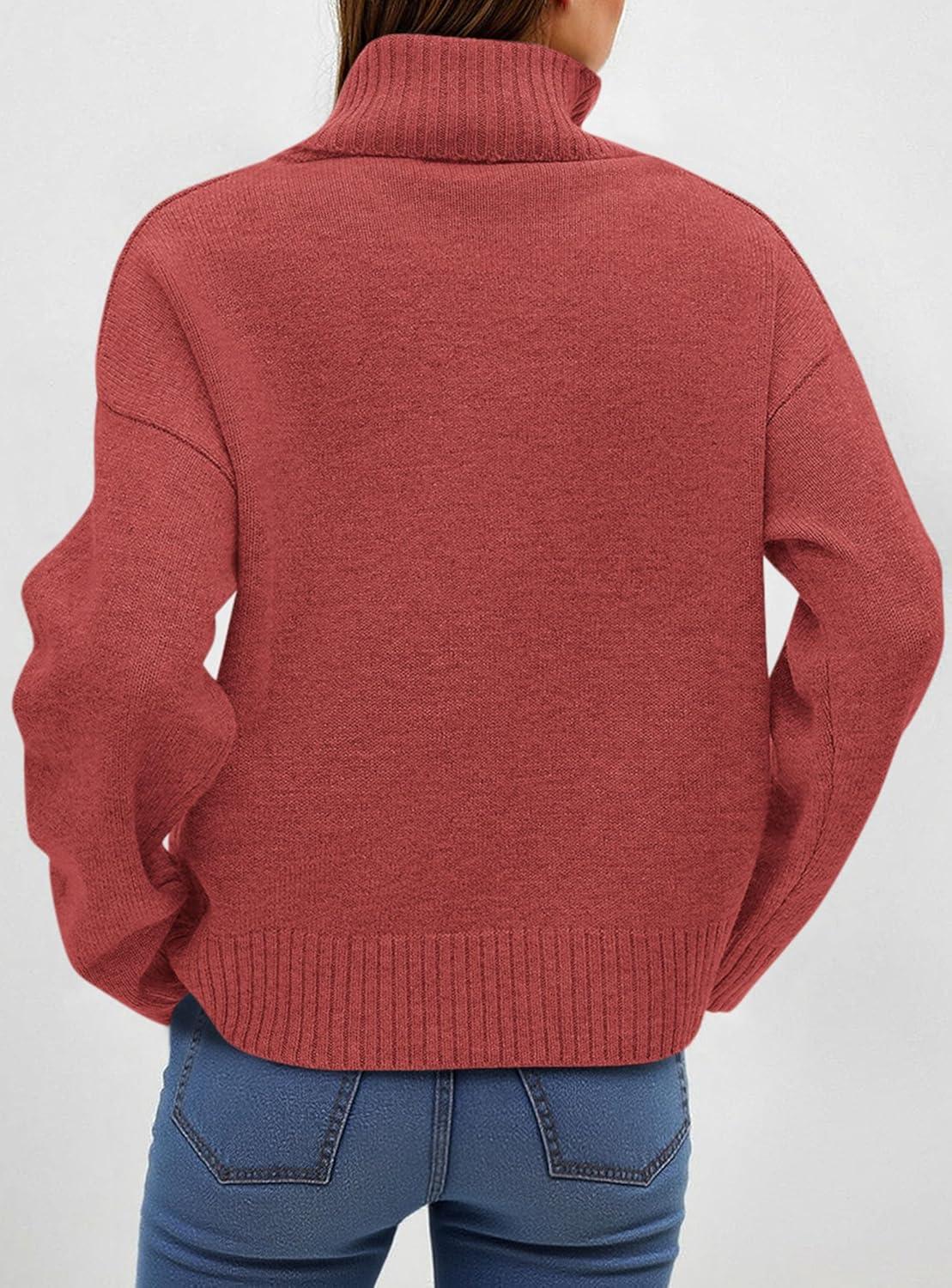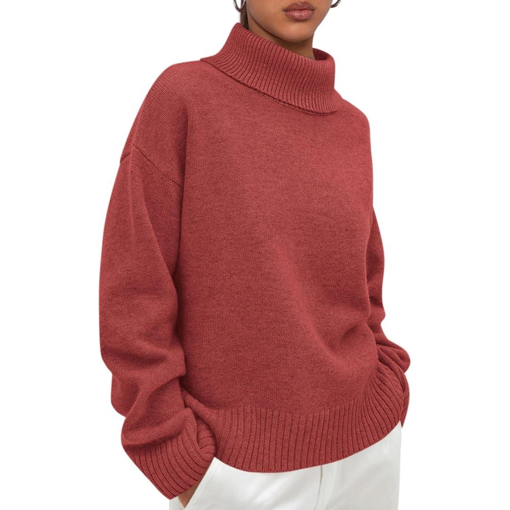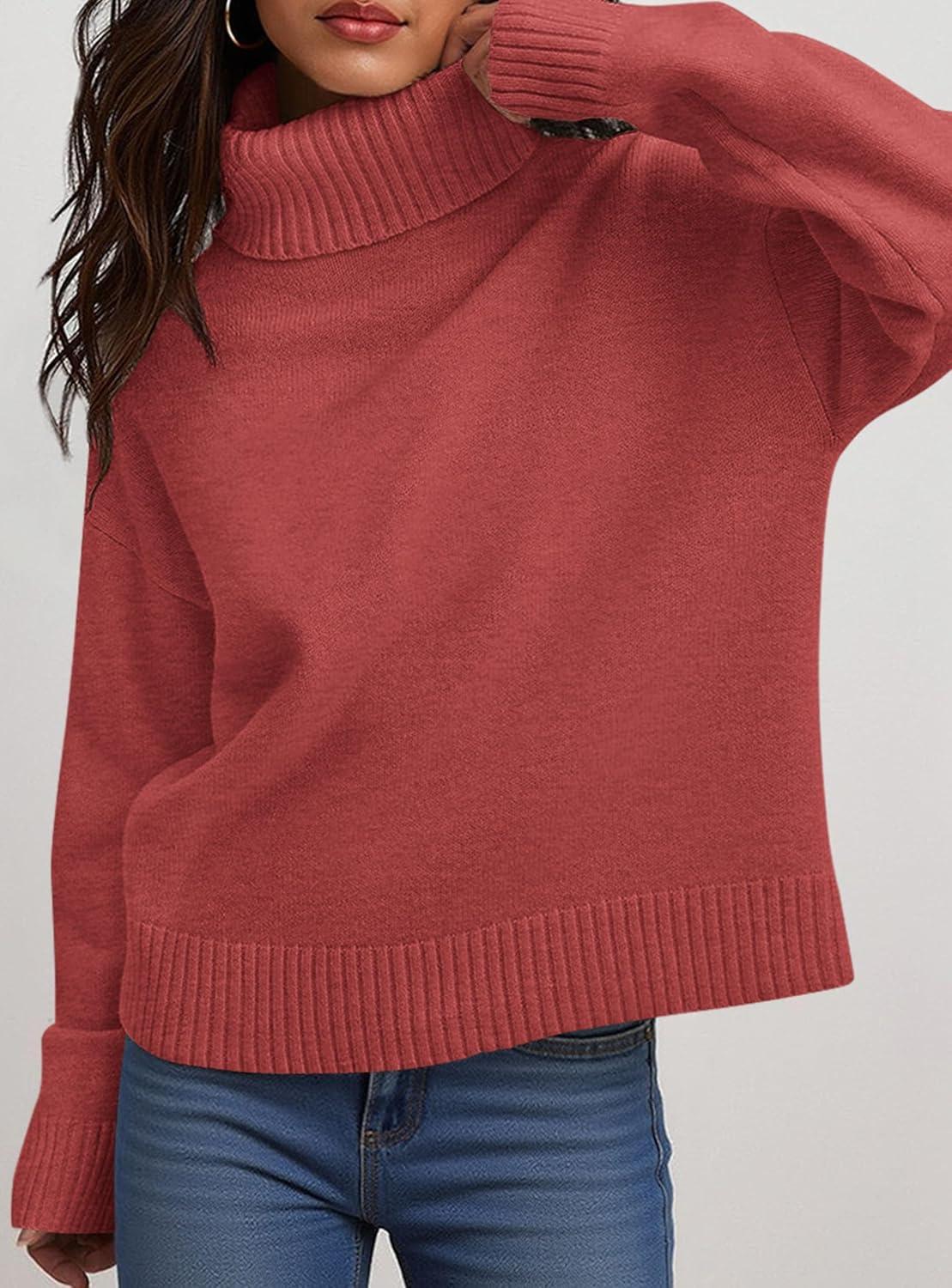 PRETTYGARDEN Womens Turtleneck Long Sleeve Sweater 2025 Fall Trendy Loose Fit Casual Tops Chunky Knit Pullover Sweaters(Burnt Orange)