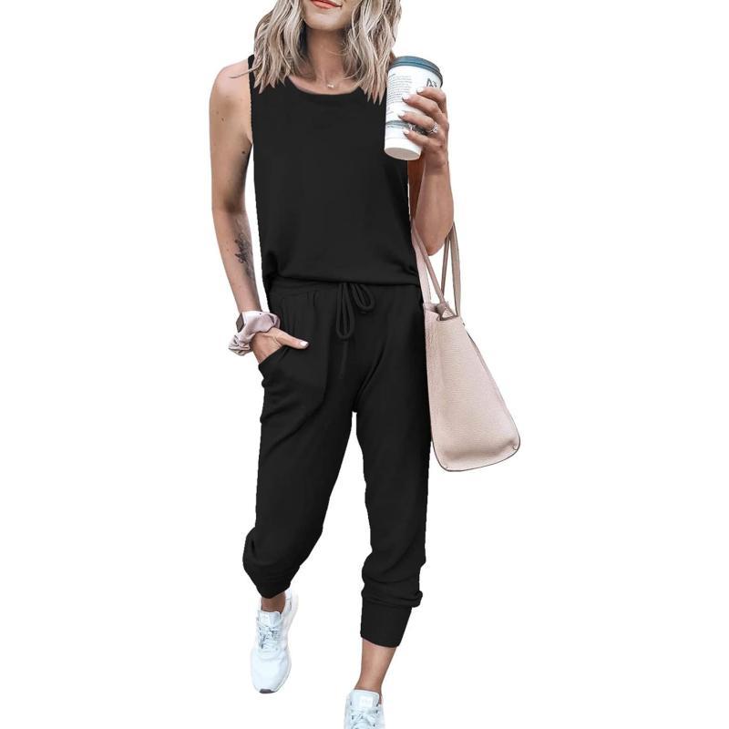Design:Womens Two Piece Outfits/Sleeveless Tops/Crewneck Pullover/Tank Tops/High Waist/Drawstring Waist/Solid Color/Beam Foot/Loose Fit/Long Pants/Sweatpants/Two Piece Sweatsuits For Women/Active Wear Two Piece Sets For Women/Two Piece Workout Outfits For Women/Two Piece Pajamas For Women/Two Piece Jogger Sets For Women/Two Piece Lounge Outfits For Women/Sleeveless Two Piece Outfits For Women/Tops And Bottom Matching Set