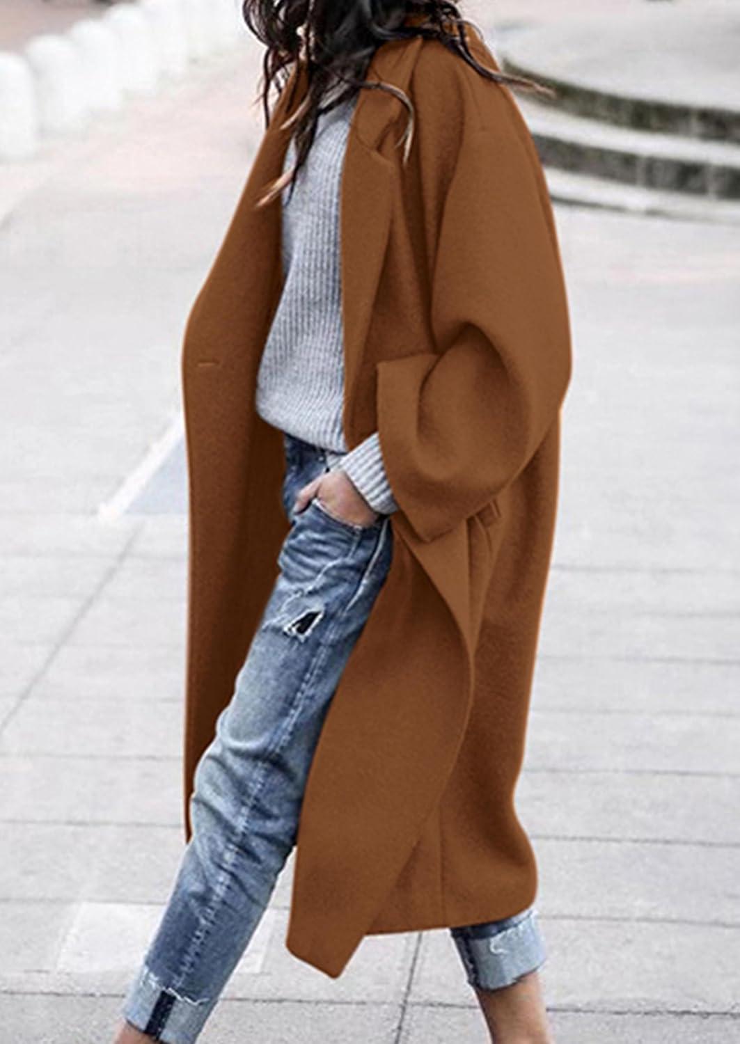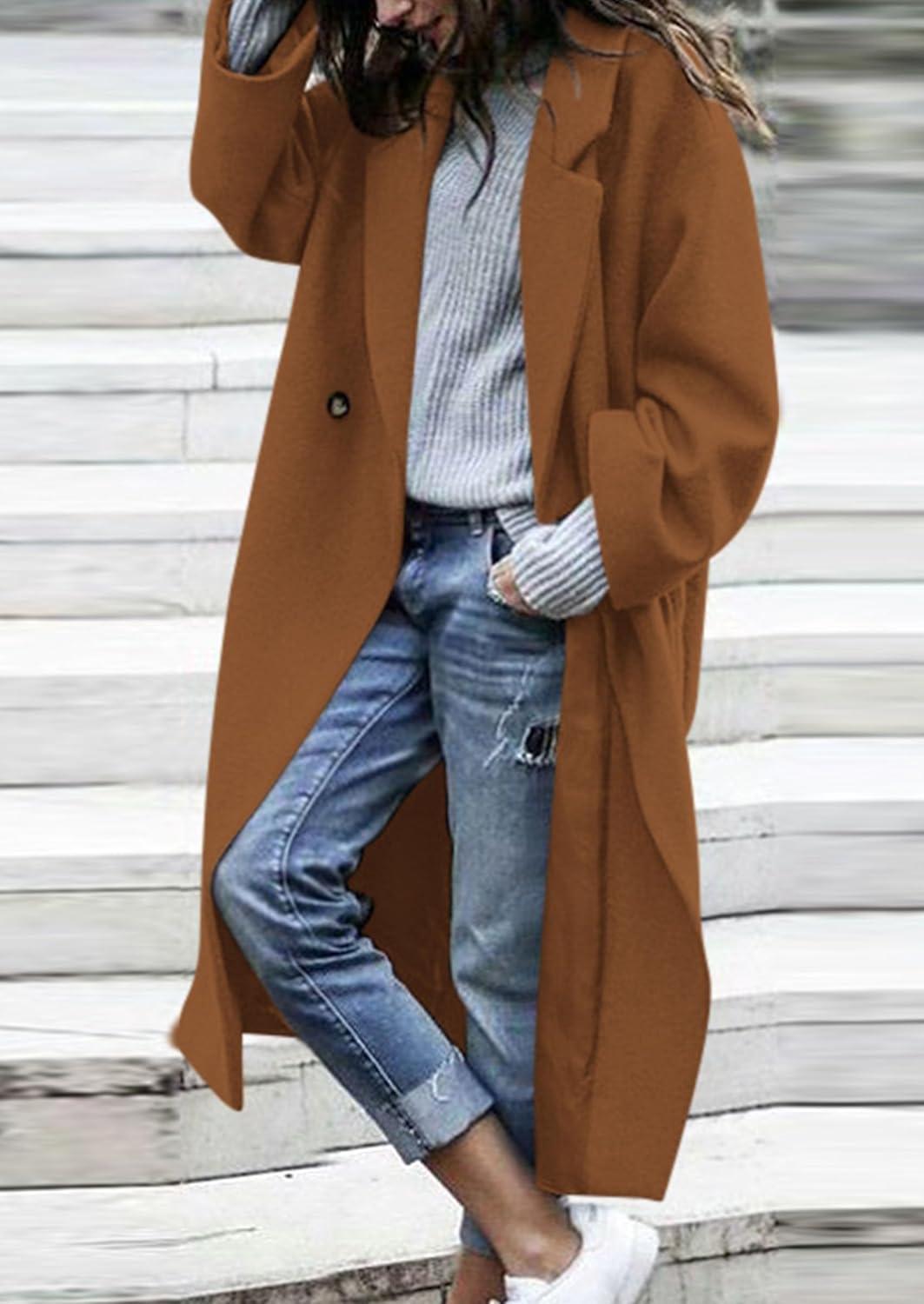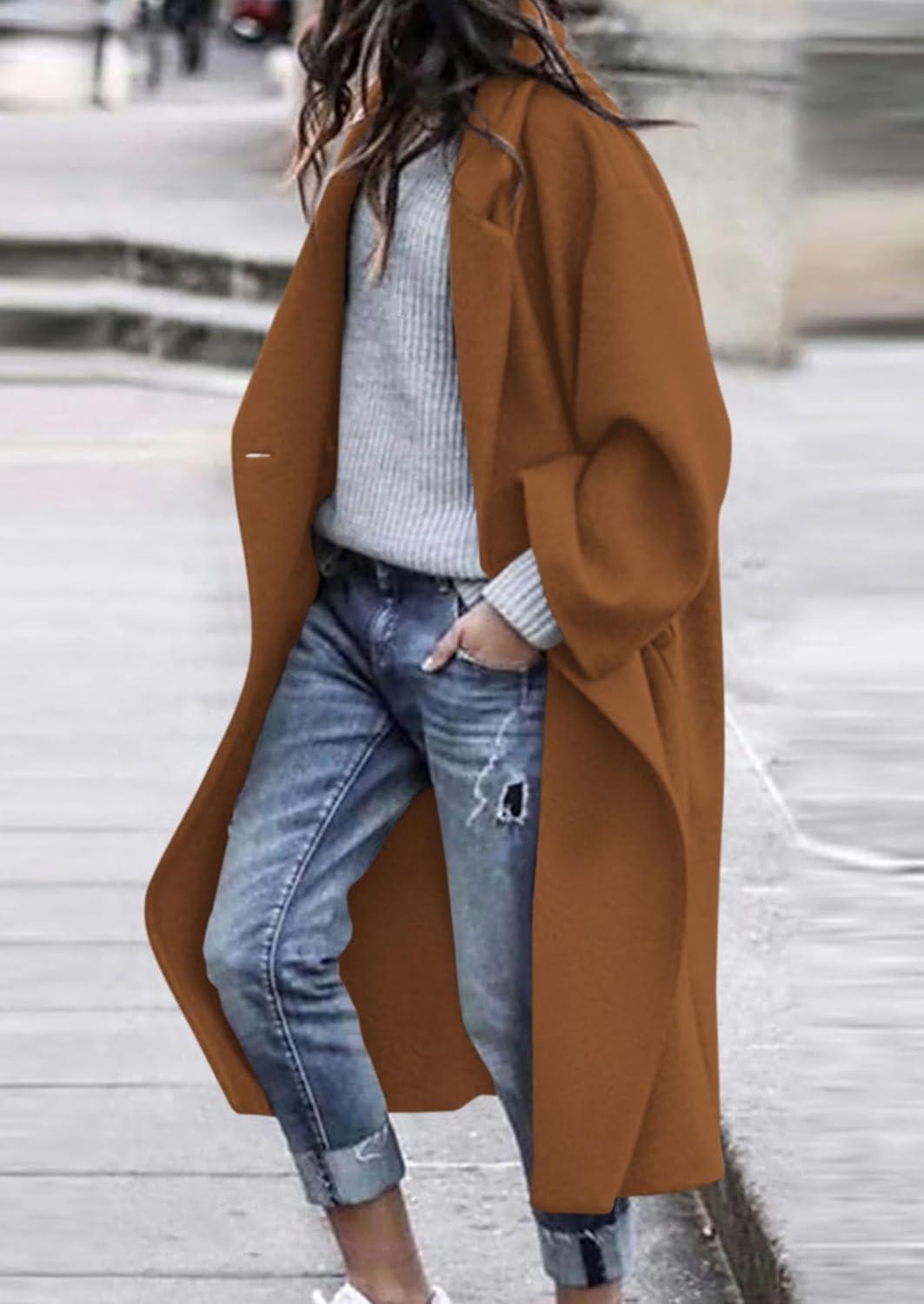 PRETTYGARDEN Womens Winter Coats 2025 Trendy Long Sleeve Notch Lapel Button Long Jackets Casual Oversized Vacation Outfits(Camel)